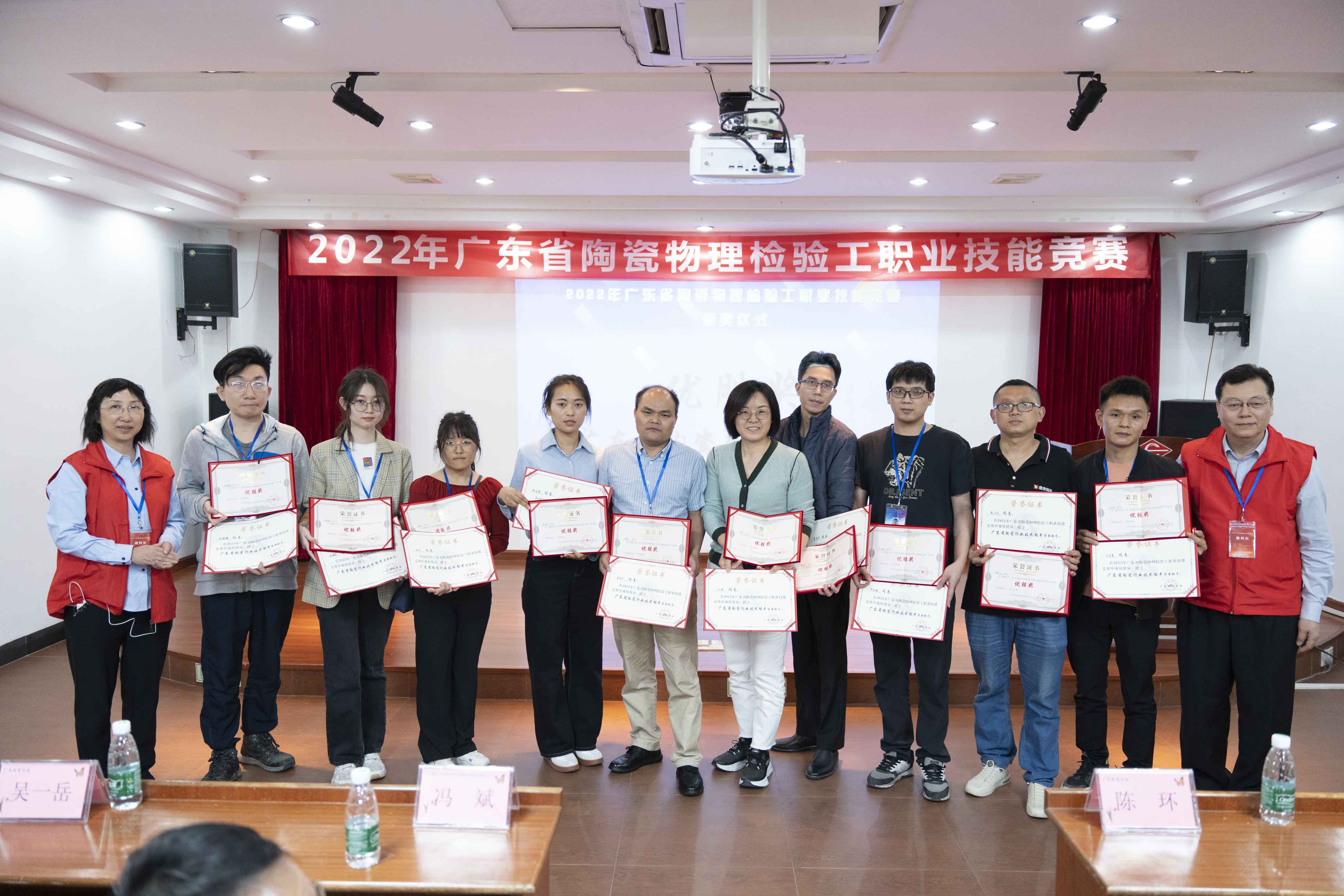 最后,恭喜由廣東陶瓷協會主辦,佛山市陶瓷研究所檢測有限公司承辦,廣東省工業工會委員會、廣東省建筑材料行業協會、廣東省建材行業工會聯合會、廣東省城市技師學院、廣東省陶瓷產品質量檢驗認證服務中心等單位協辦,以及廣東佛山市陶瓷研究所控股集團股份有限公司全力支持的2022年廣東省陶瓷物理檢驗工職業技能競賽取得圓滿成功。