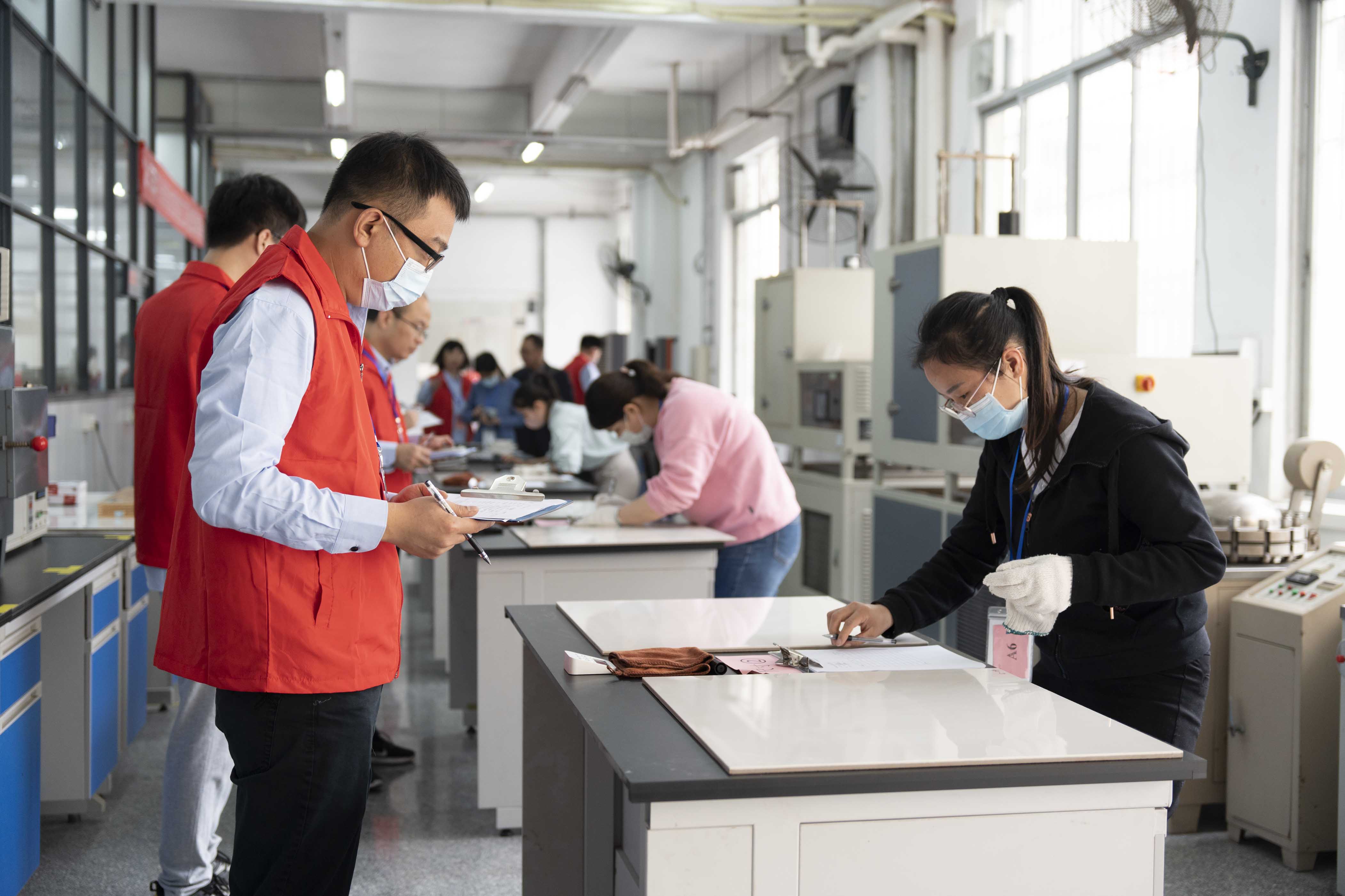 據了解,這是廣東陶瓷協會第四次舉辦“陶瓷物理檢驗工”省級大賽,引起了社會各界及行業人士的廣泛關注和熱烈反響,來自馬可波羅控股、東鵬控股、新明珠(廣東)新材料、蒙娜麗莎集團、廣東省建材研究院、金牌陶瓷、肇慶樂華、佛山東鵬陶瓷、家美陶瓷、石灣鷹牌陶瓷、三水金意陶、佛山鷹牌科技、昊晟陶瓷、華夏建筑陶瓷研發中心等14家單位的34位選手參加角逐,吸引了行業內外眾多研發、生產、營銷、應用企業及用戶、消費者的觀摩、關注。競賽采用理論知識與操作技能相結合的形式舉辦,以陶瓷磚產品物理性能檢測要求進行。為適應新時期陶瓷行業高質量發展的新要求,本次比賽理論考試增加廣東陶瓷協會T/GDTC002—2021《陶瓷巖板》團體標準中陶瓷巖板方面的新知識內容,使技術工人通過競賽實現繼續教育和知識更新。
